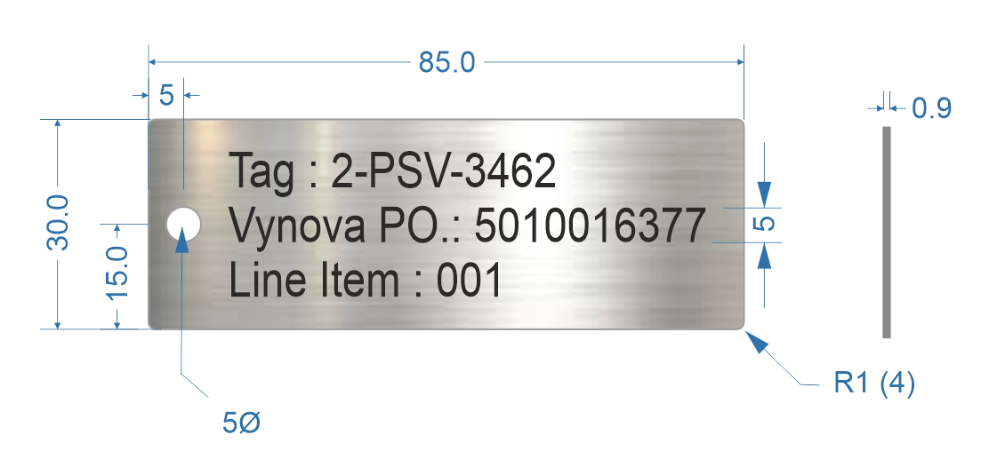 Dependant on character count (Approx 3.5mm with 11 Characters)