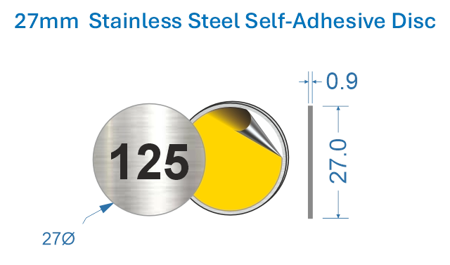 27mm Stainless Steel Self-Adhesive Tags packs of 25 Number sequenced