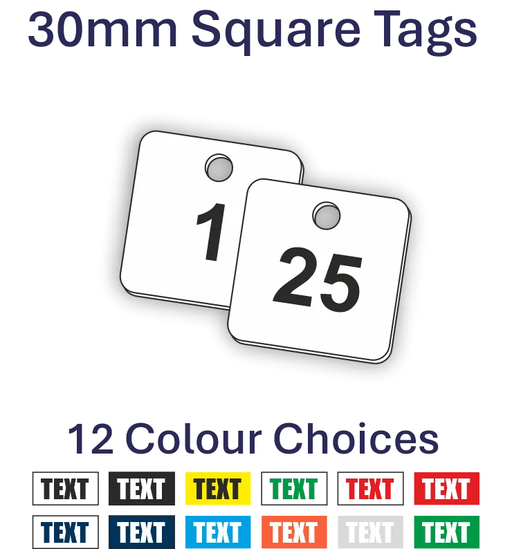 30mm Square Traffolite plastic valve tags packs of 25 number sequenced