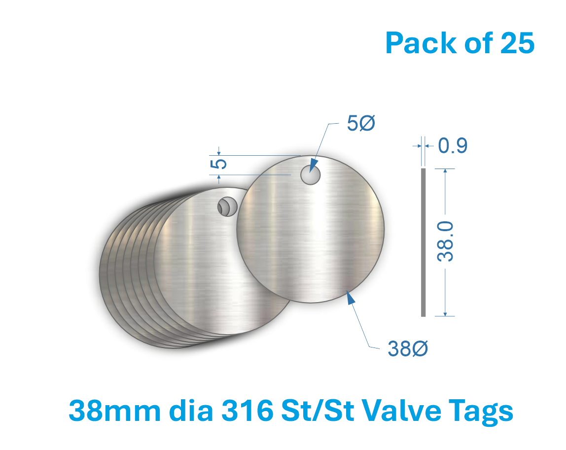 Durable and versatile blank valve tags, perfect for industrial identification needs. These tags are ideal for stamping with letters or numbers, allowing for custom labeling of valves, pipes, and equipment.
