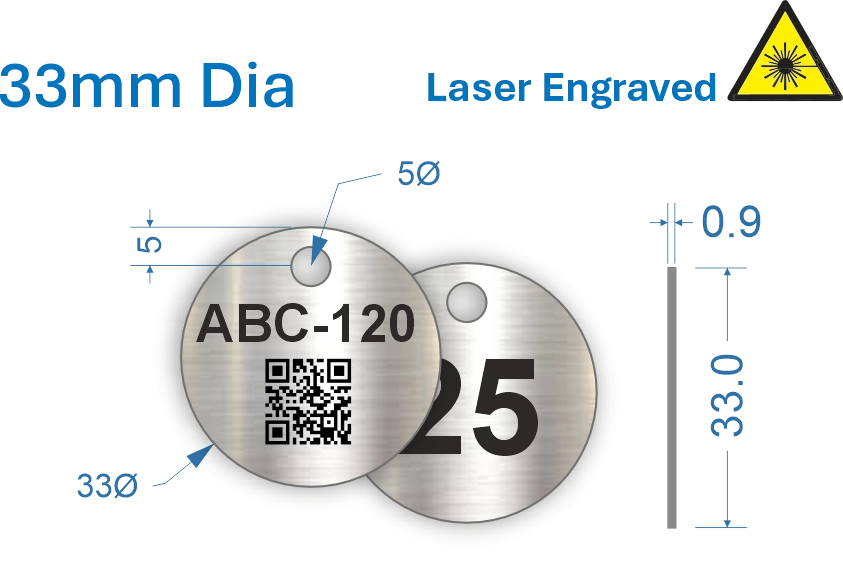 33mm dia. Laser Engraved Stainless Steel Valve Tags