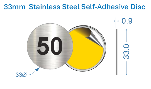 33mm Stainless Steel Self-Adhesive Tags packs of 25 Number sequenced