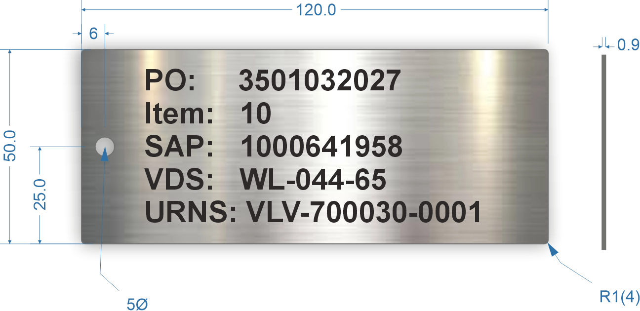 120x50mm Rectangle Stainless Steel Valve Tags